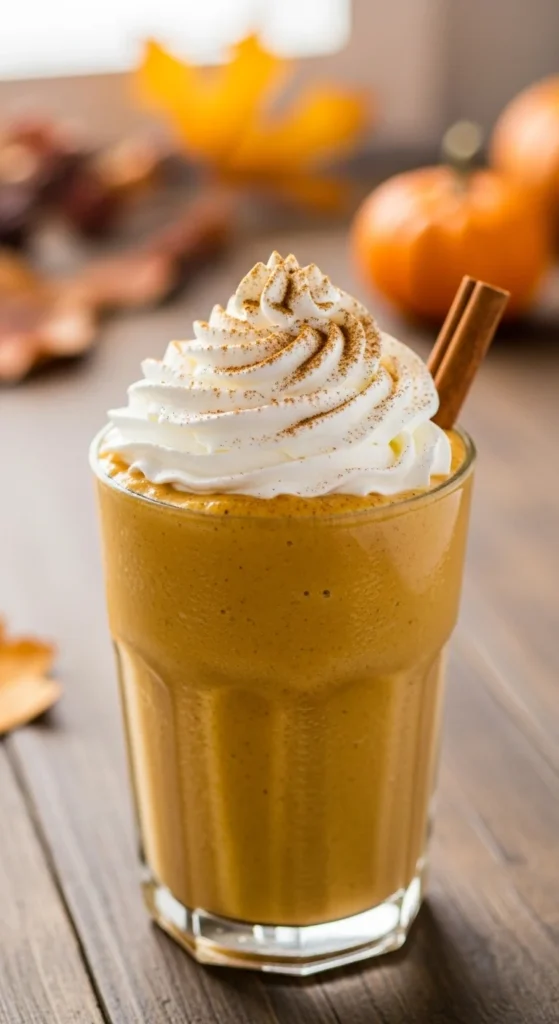 Blend pumpkin puree, milk, banana, and cinnamon. It’s smooth, creamy, and tastes like dessert. Perfect if you want something light but festive.