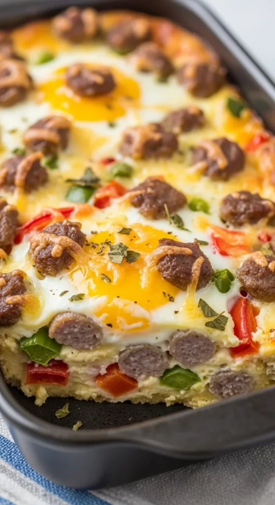 This hearty dish combines eggs, sausage, and cheese in one pan. Mix everything together, bake, and serve warm. It’s perfect for feeding a big family without standing at the stove all morning.