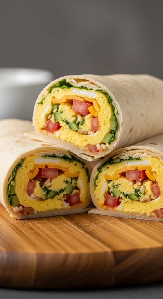 Scramble eggs, add cooked sausage or veggies, and wrap in tortillas. These can be made ahead and frozen for quick reheating. Serve with salsa or hot sauce for an easy grab-and-go option.