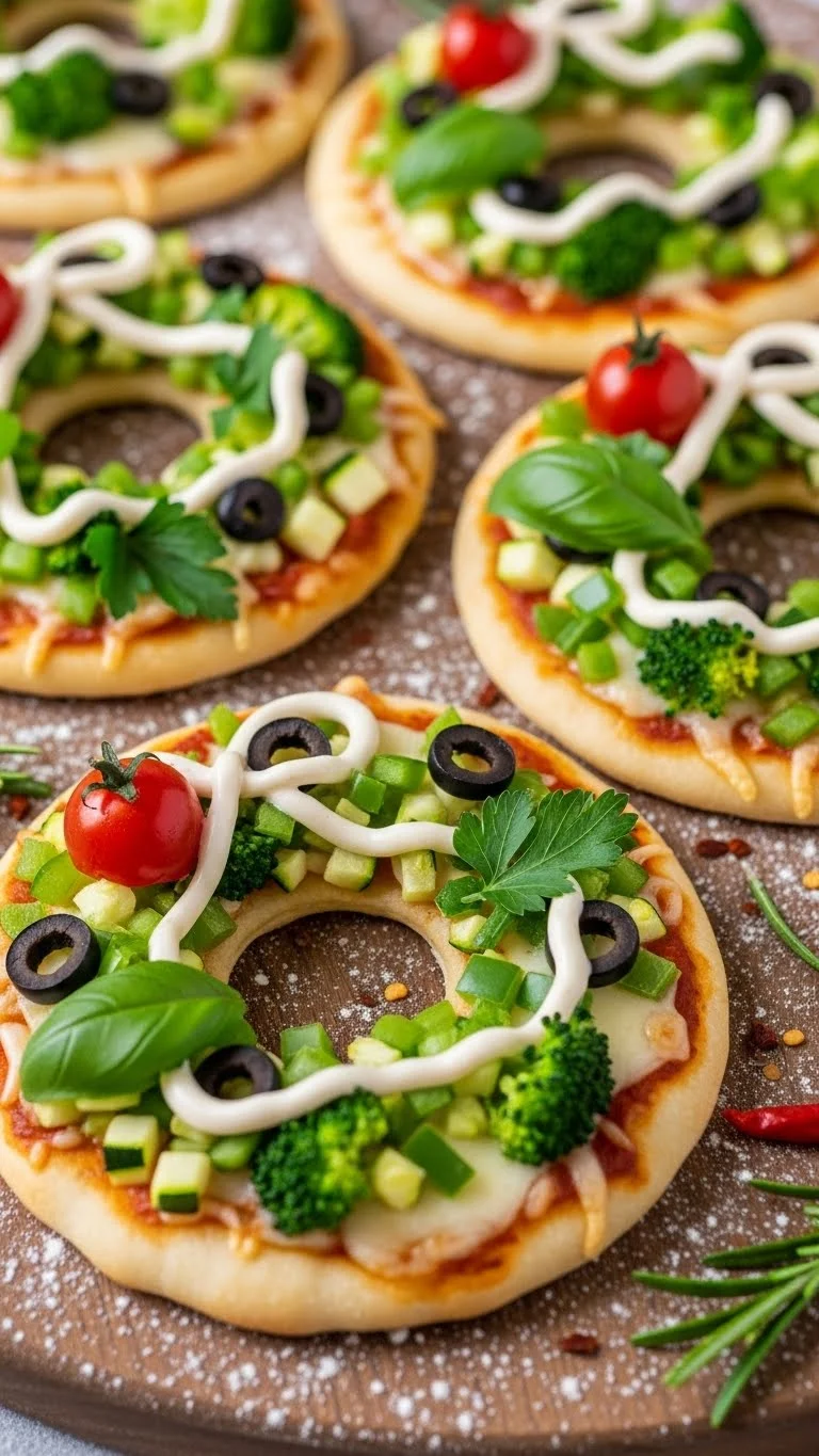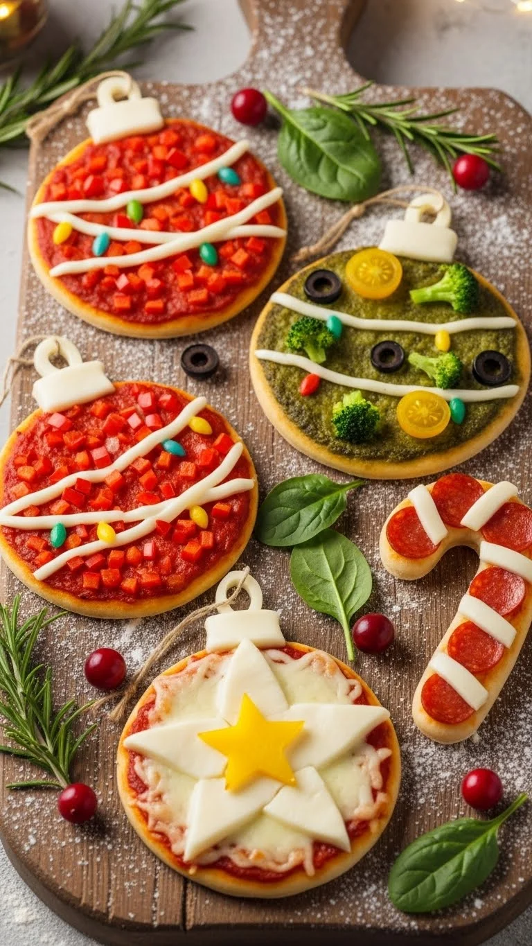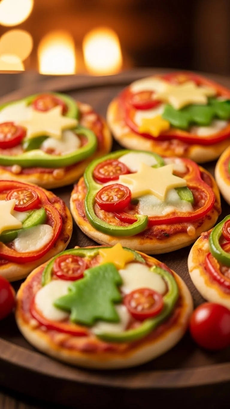 With playful shapes, easy toppings, and kid-friendly assembly, these tiny pizzas make holiday snacking fun and stress-free.