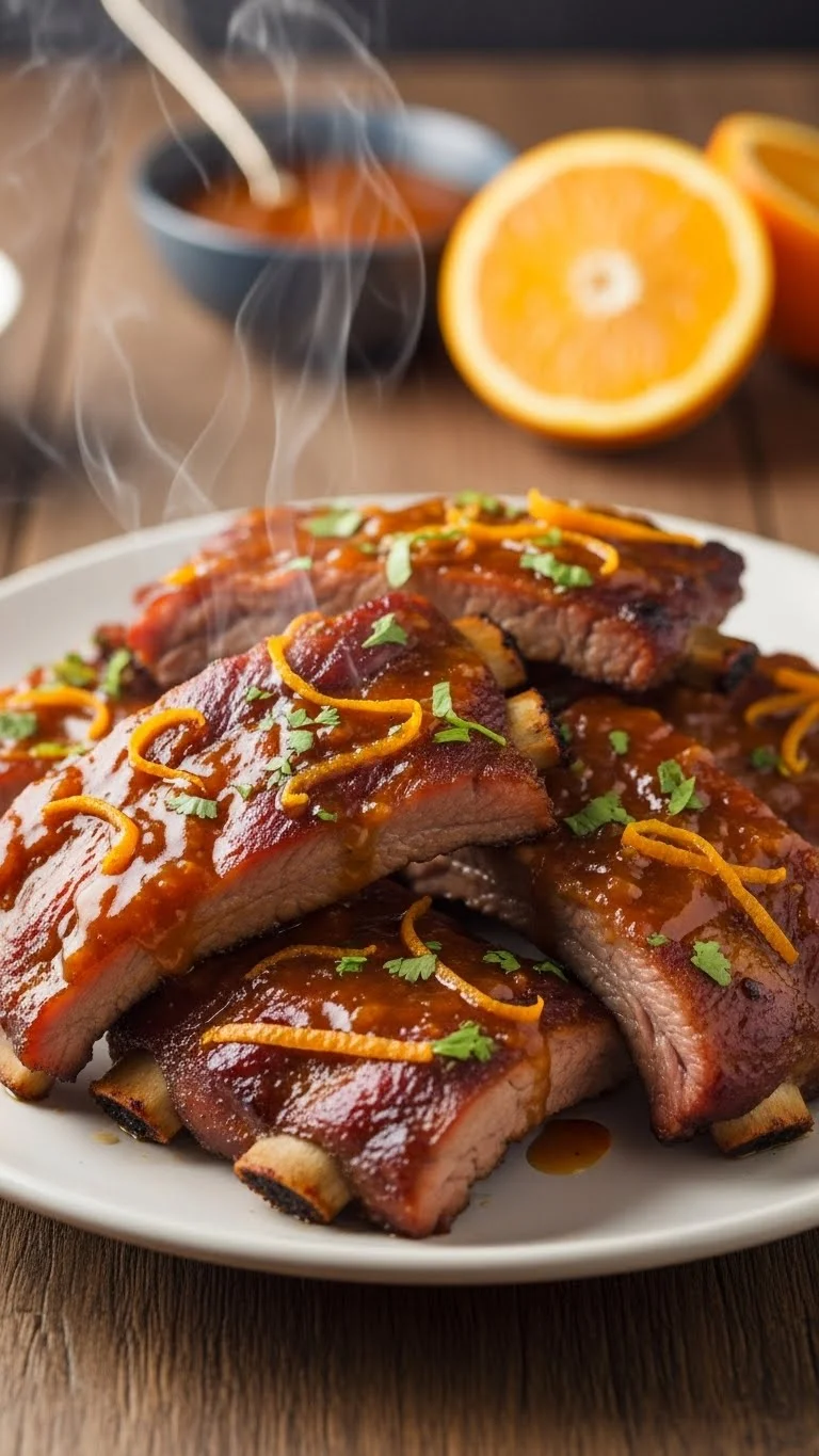 Simmer orange juice with soy sauce until thick. Brush generously on warm ribs right before serving.
