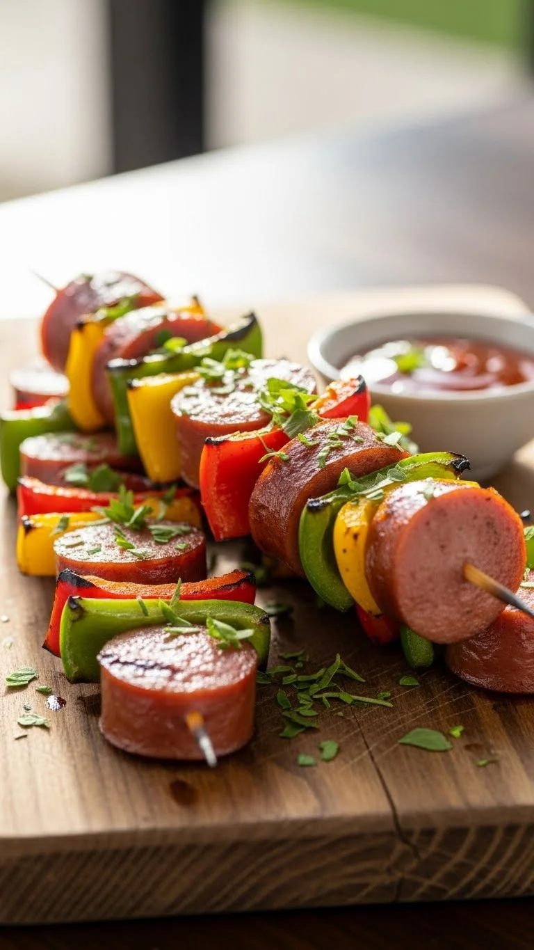 Cook sausage, slice, and pair with peppers for a hearty bite.