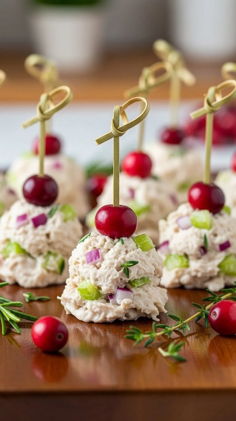 Use crackers or cucumber slices at the base, then add a small scoop of chicken salad.