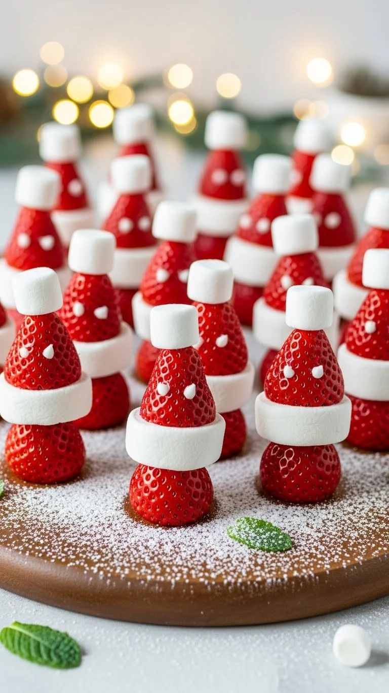 Stack a strawberry with a marshmallow on top. Quick, cute, and kid-friendly.
