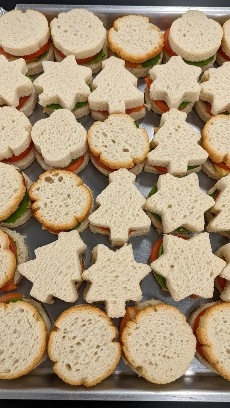 Cut sandwiches into stars, trees, or rounds. Use simple fillings like ham, turkey, or cheese.