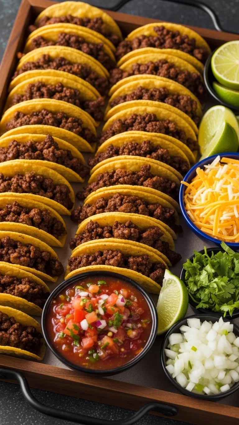 Fill mini tortillas with simple taco fillings. Add bowls of salsa and cheese for topping.