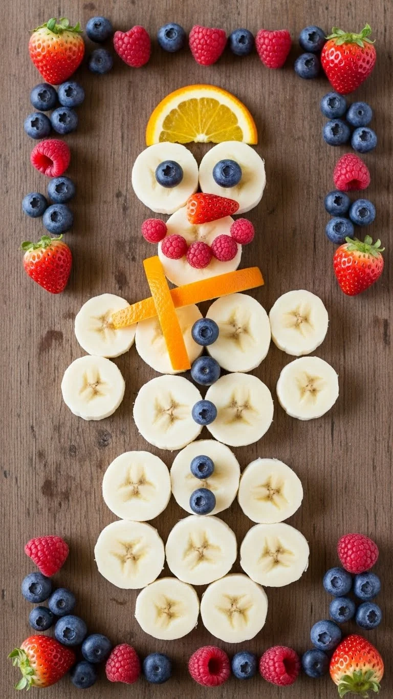 Use banana slices for the snowman’s body, blueberries for buttons, and strawberries for the hat. Great for kids and super affordable.
