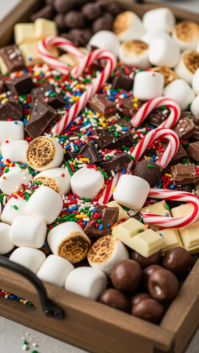 Add cookies, chocolate bark, and mini candy canes. Quick, cute, and always popular.