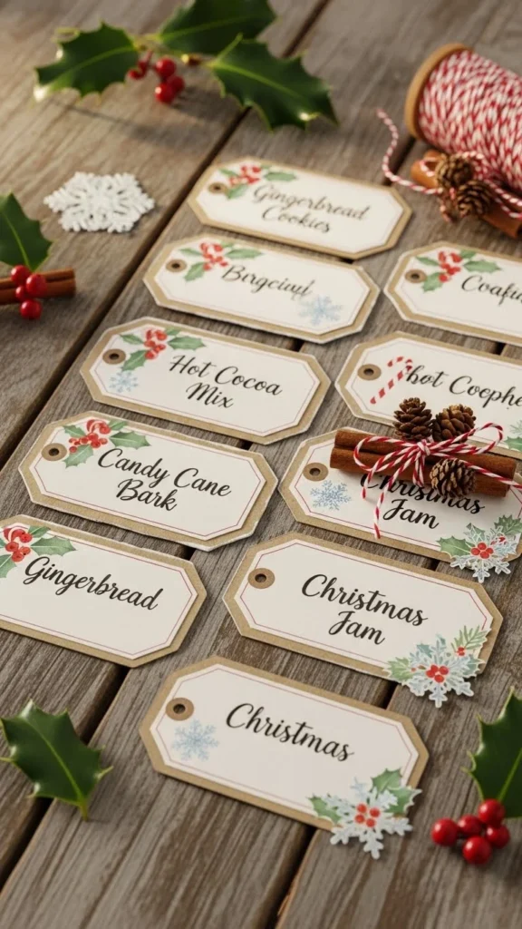 Use food labels everywhere for a beautifully organized Christmas setup.
