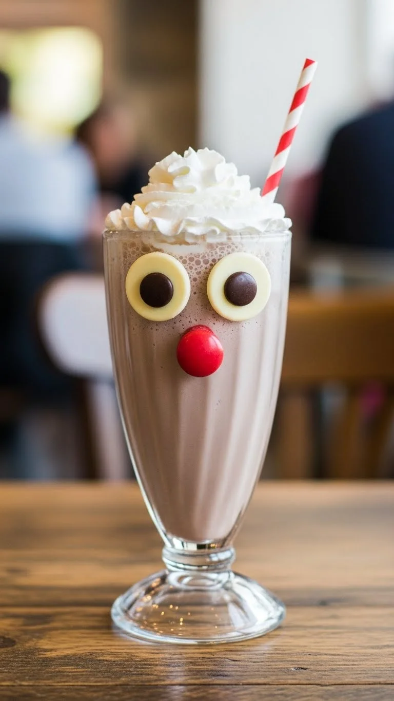 Make a chocolate shake and add candy eyes and a red candy nose for a playful reindeer look.