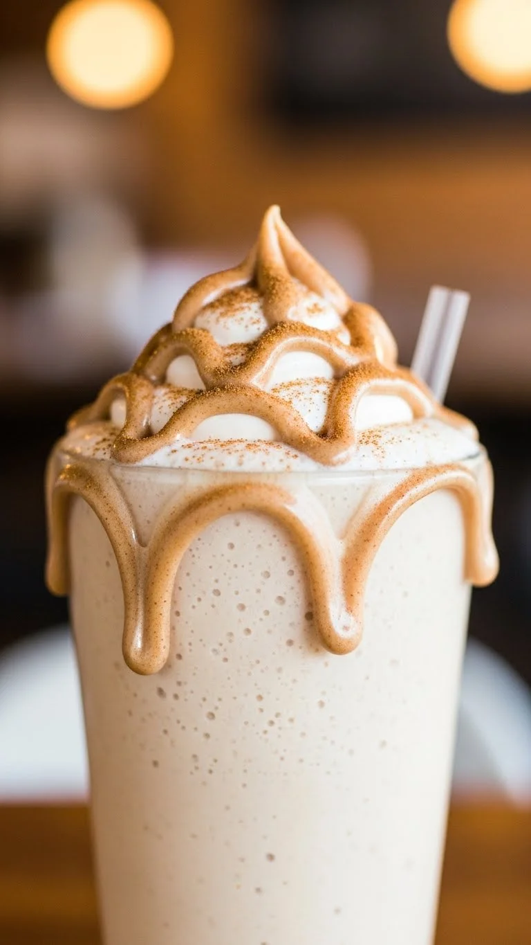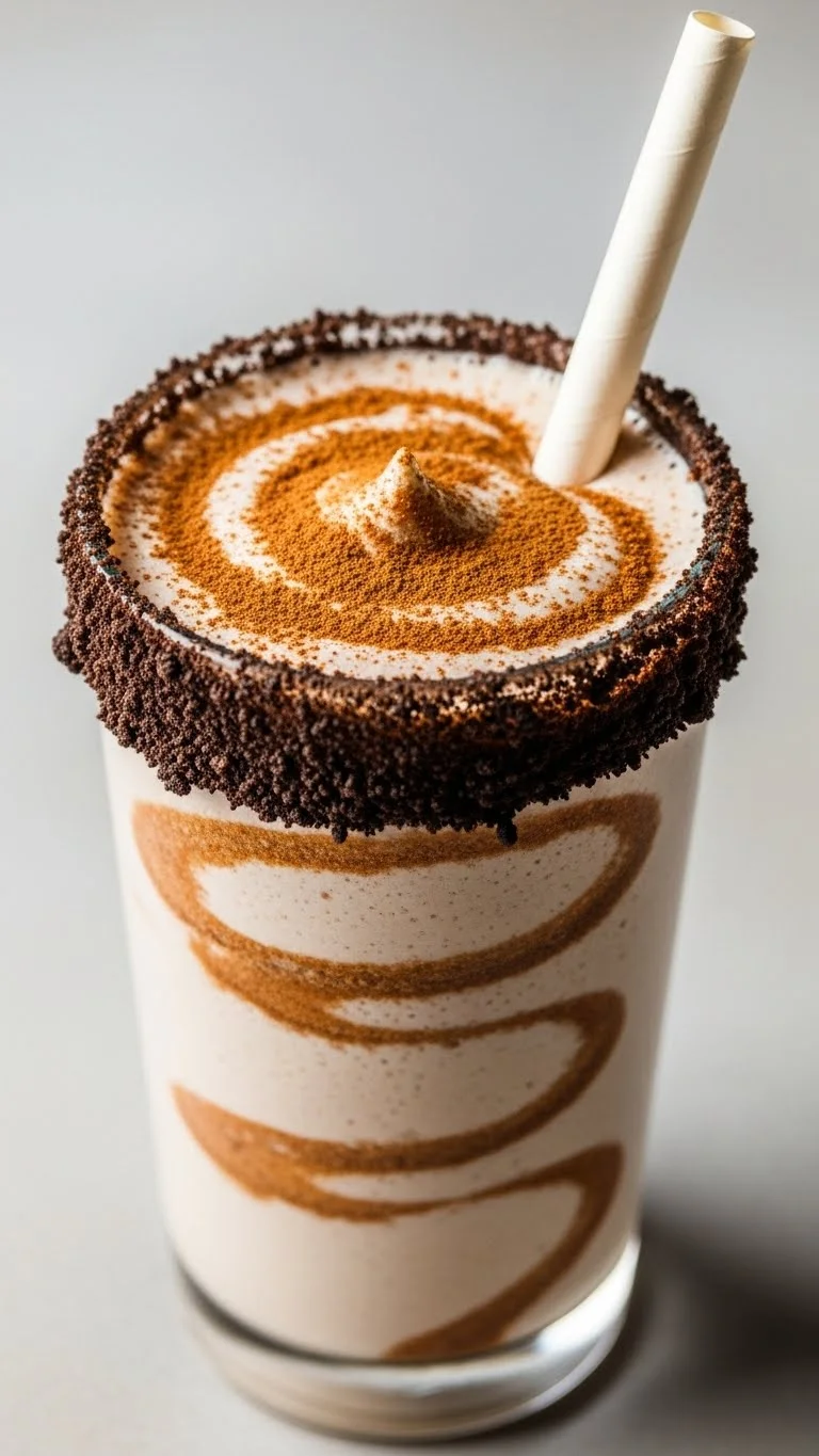 Blend ice cream with cinnamon sugar and a snickerdoodle cookie. Coat the rim with cinnamon.