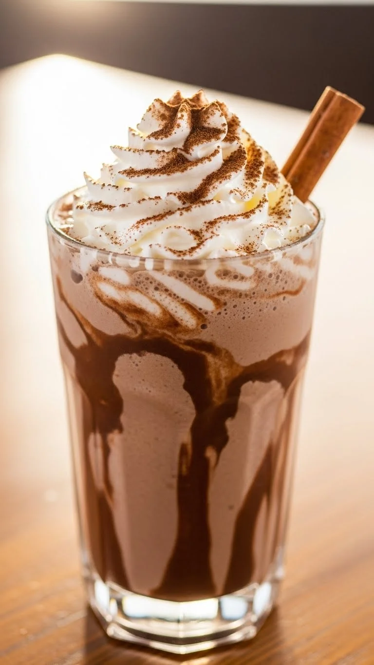 Blend chocolate ice cream with a pinch of cinnamon and cocoa. Simple and warm.