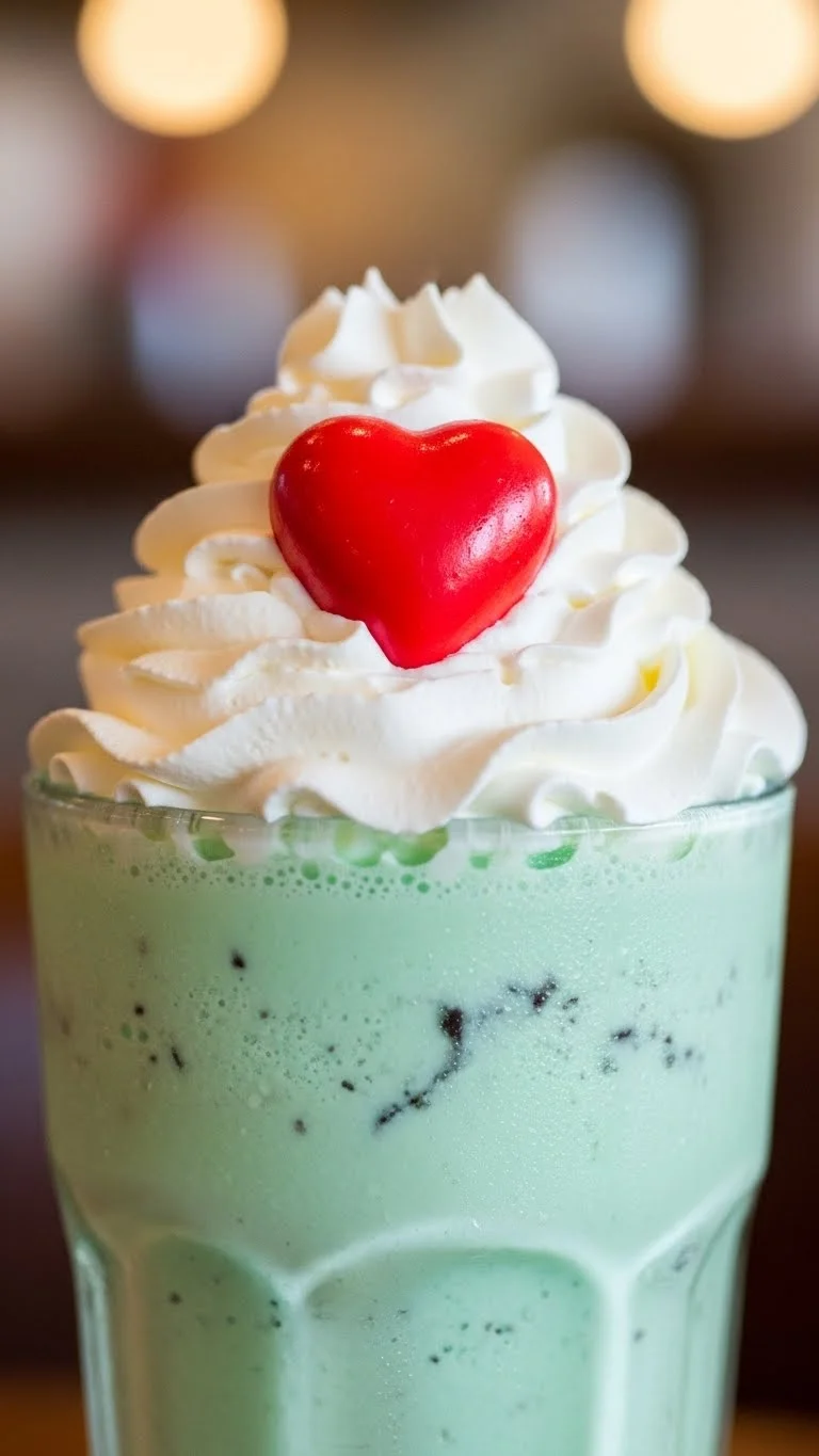 Blend mint ice cream with vanilla. Add a red candy heart on top for fun.