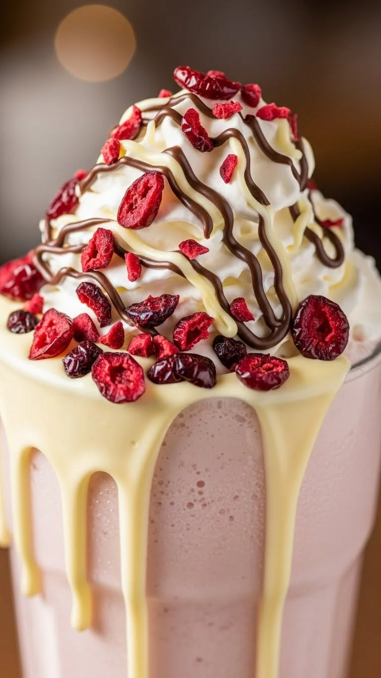 Blend vanilla ice cream with melted white chocolate and a spoon of cranberry sauce. Add a small swirl on top.