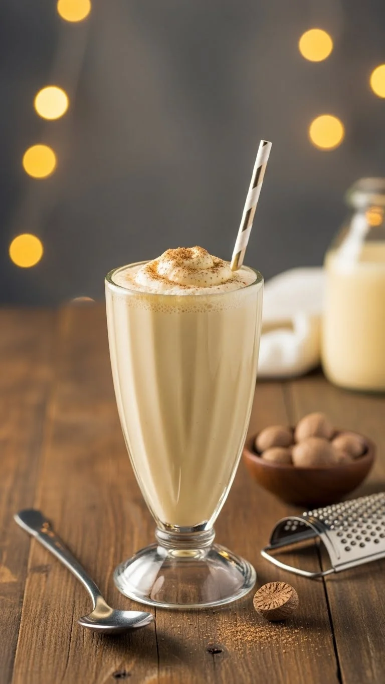 Use eggnog instead of milk and blend with vanilla ice cream. Add nutmeg on top.