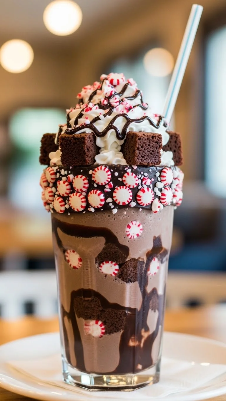 Blend a brownie with chocolate ice cream and add peppermint pieces.