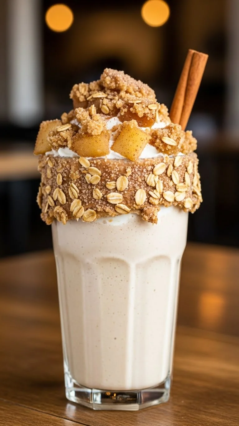Blend vanilla ice cream with cooked apples and cinnamon. Add crumble on top.
