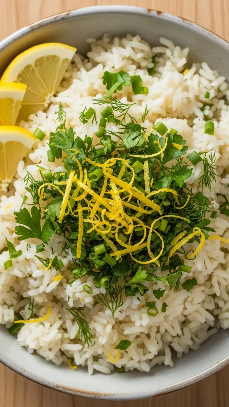Add lemon zest and chopped herbs to rice for a lighter flavor alongside rich holiday dishes.