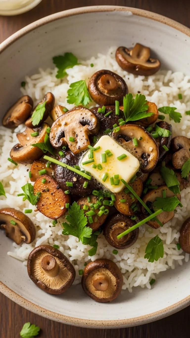 Cook mushrooms until golden, then mix with rice and herbs for a hearty side.
