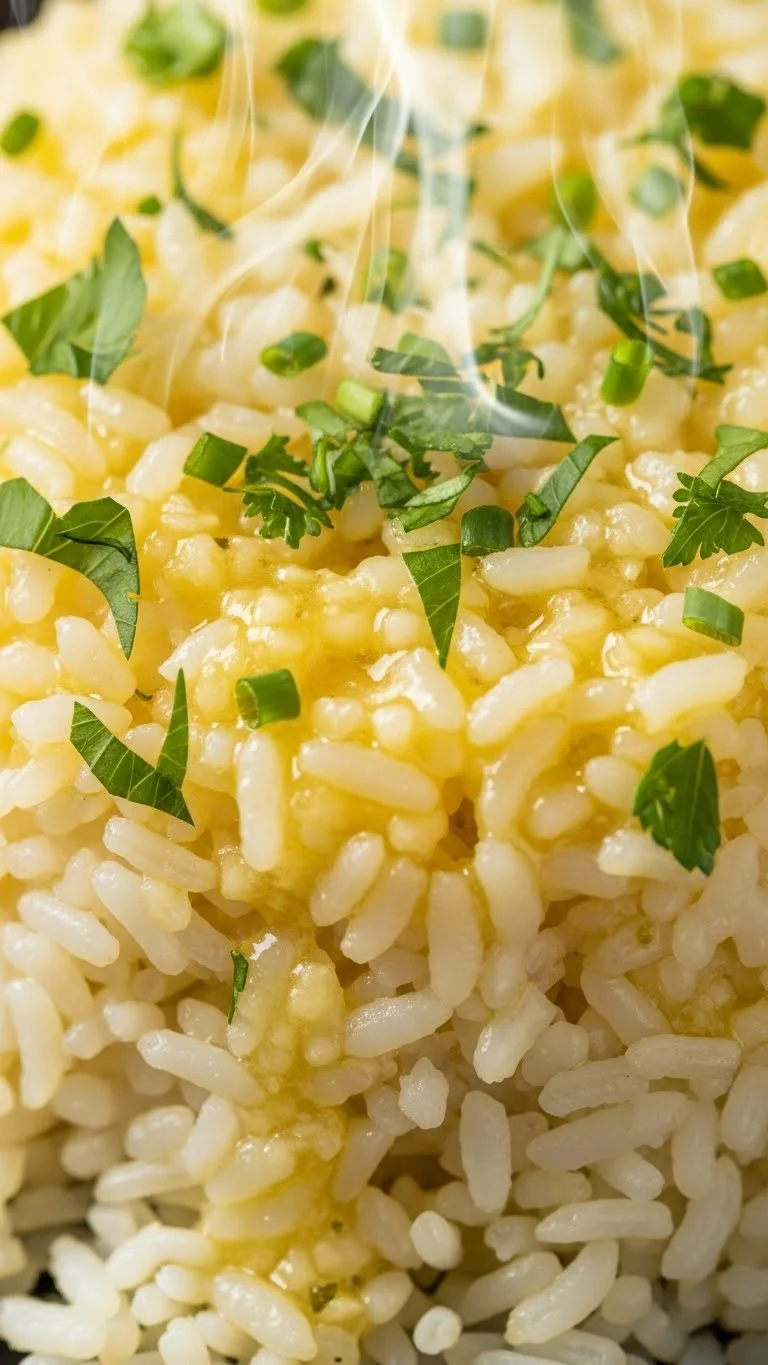 Melt butter with garlic, stir into hot rice, and finish with herbs. Simple and comforting.