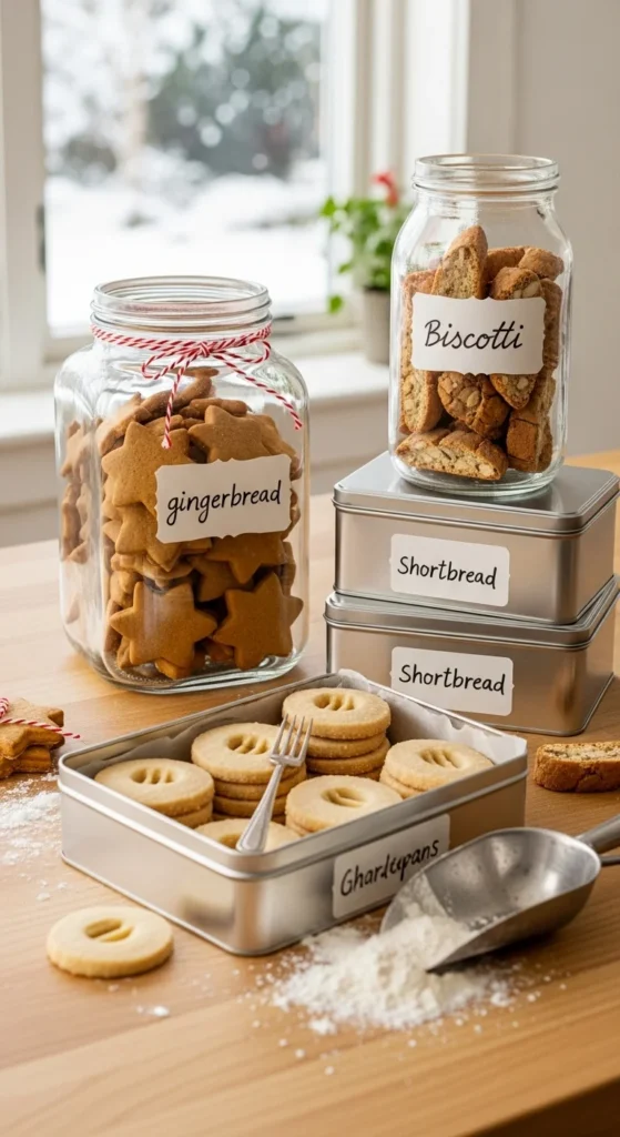 - Place sturdier cookies first on the bottom layer (like shortbread or biscotti).
