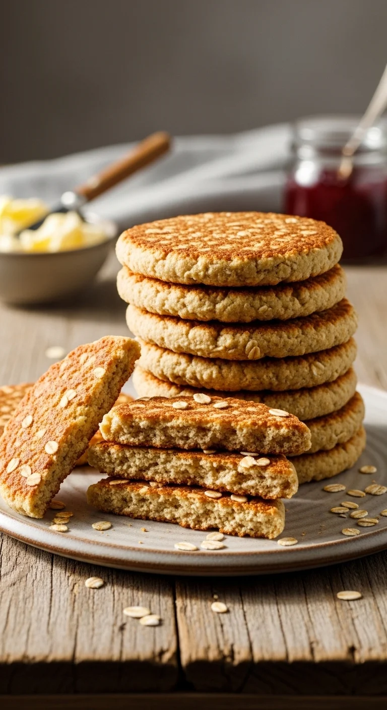 Oatcakes are crisp and lightly salty. Serve with butter or cheese.