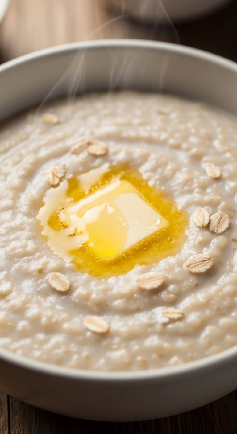 Made with steel-cut oats and water or milk, Irish porridge cooks slowly until thick and creamy. A pinch of salt enhances flavor. Top with butter, honey, or fruit.