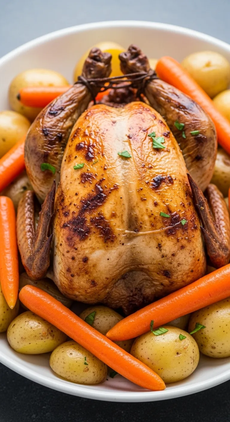 Simple roast chicken served with seasonal vegetables.