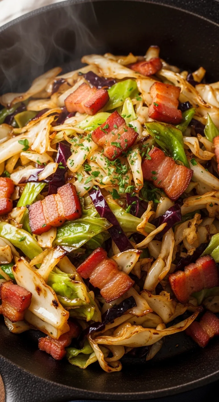 Slow-cooked cabbage with crisp bacon for savory depth.