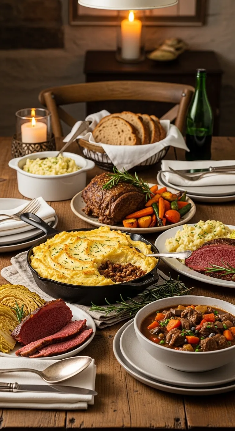 Traditional Irish dinner recipes center around nourishment and comfort. Slow-cooked meats, generous portions of potatoes, rustic breads, and seasonal vegetables define the table.