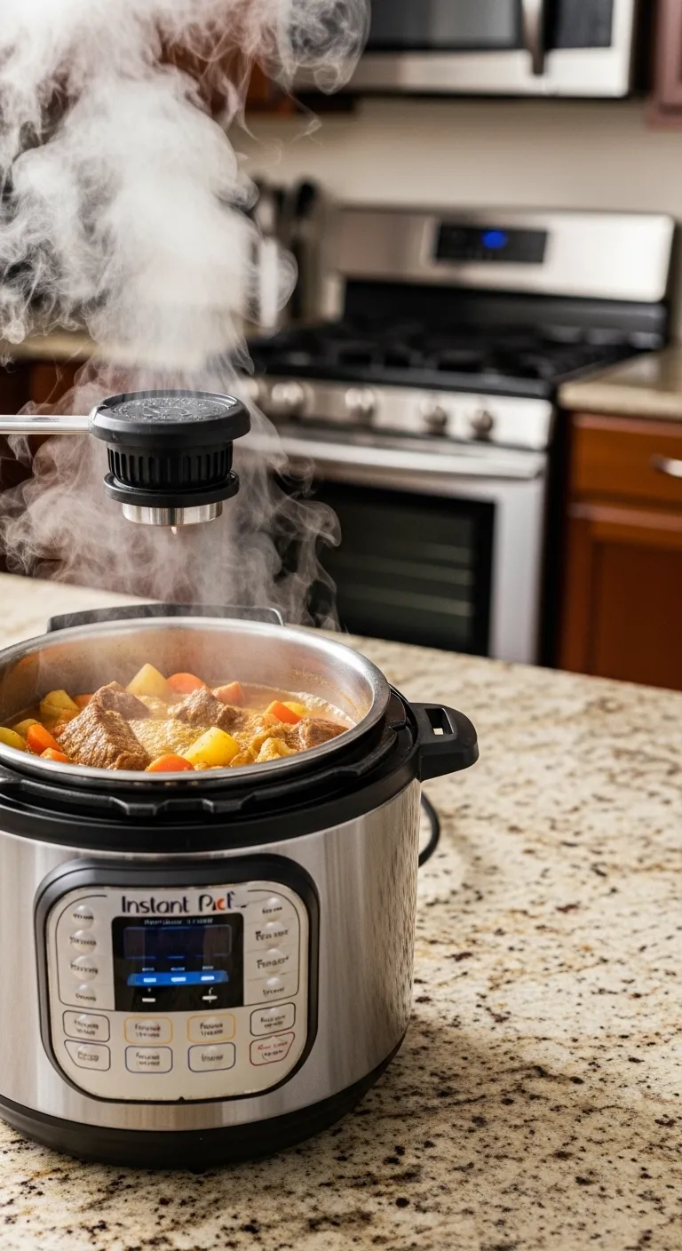 The meat emerges fall-apart tender in a fraction of the usual time. Thicken the broth with a cornstarch slurry if desired.