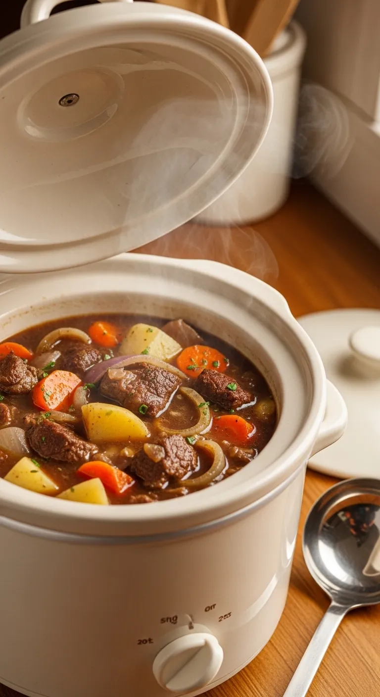 Add vegetables during the last 45 minutes. The gentle heat keeps them intact while allowing them to absorb the rich broth. Some recipes arrange potatoes on top, where they cook in the steam and develop a slightly crusty surface .