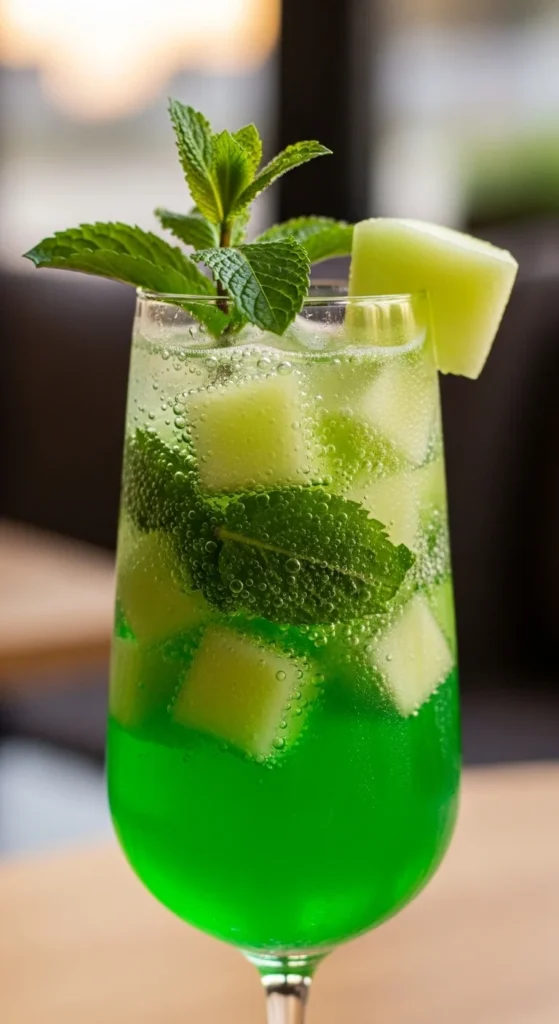 Use melon juice, lime soda, and fresh mint. Sweet, fresh, and playful. Use leftover fruit from fruit platters.