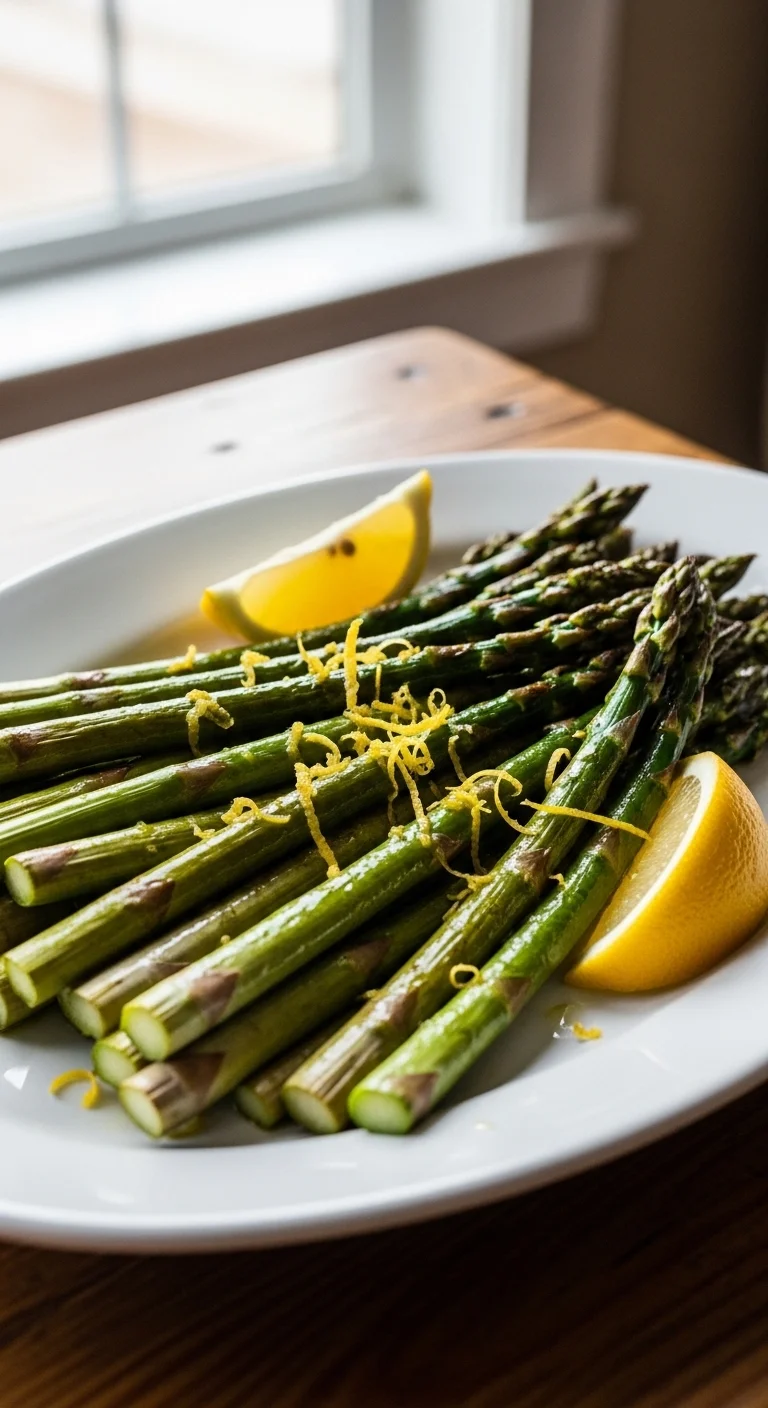 Toss trimmed spears with olive oil, salt, and pepper. Roast at high heat until just tender with lightly crisp tips. Finish with lemon zest and a squeeze of juice. Simple, bright, and dependable for any dinner.