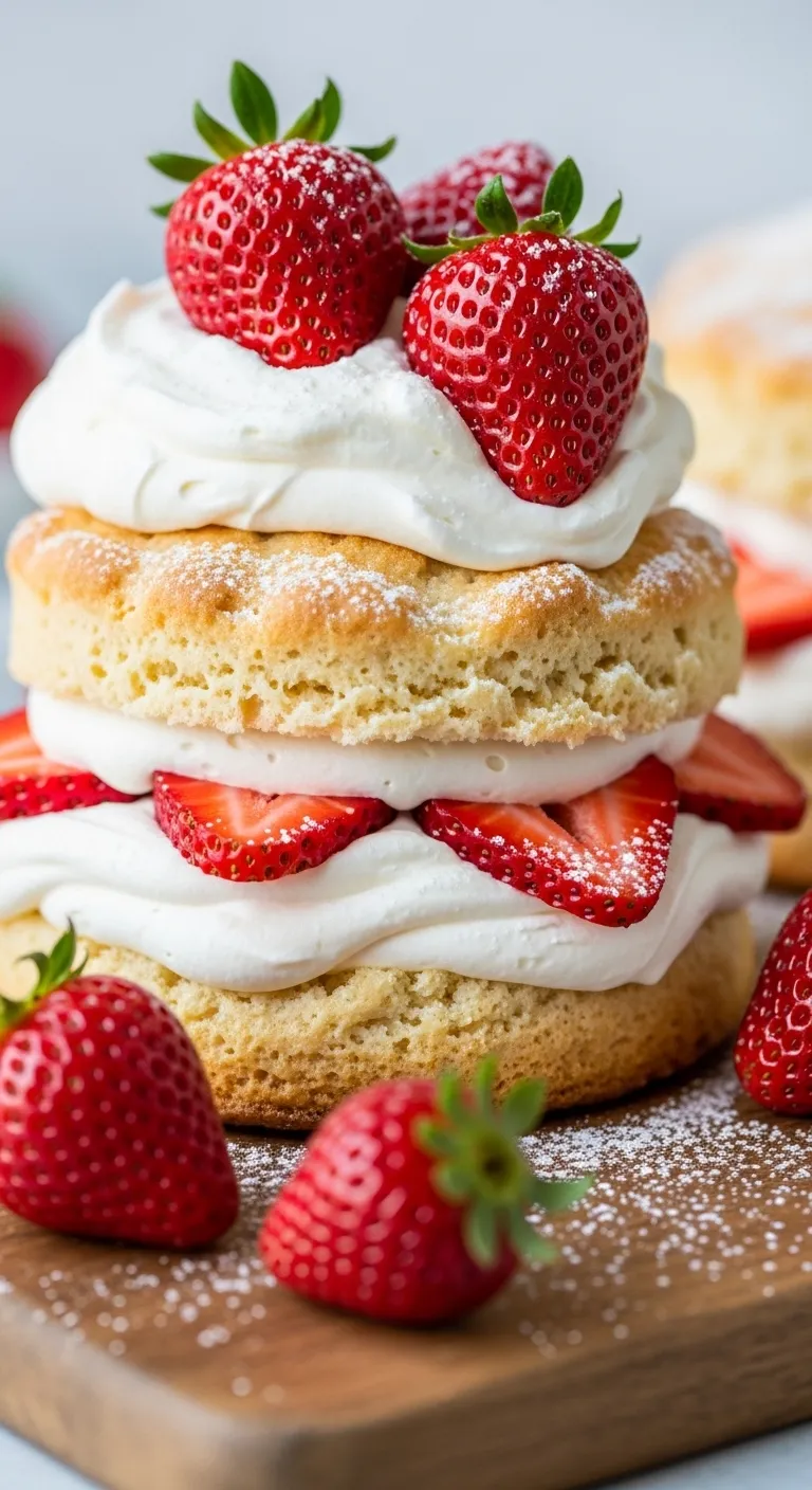 Tender biscuits layered with macerated strawberries and whipped cream create a timeless spring dessert.