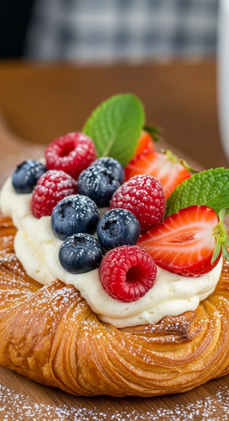 Flaky pastry filled with sweet cream cheese and berries.