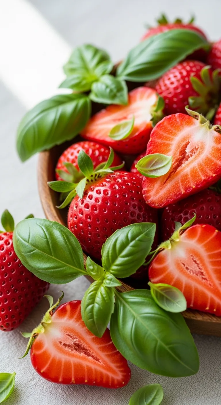 Fresh basil adds a surprising herbal note to sweet strawberries.