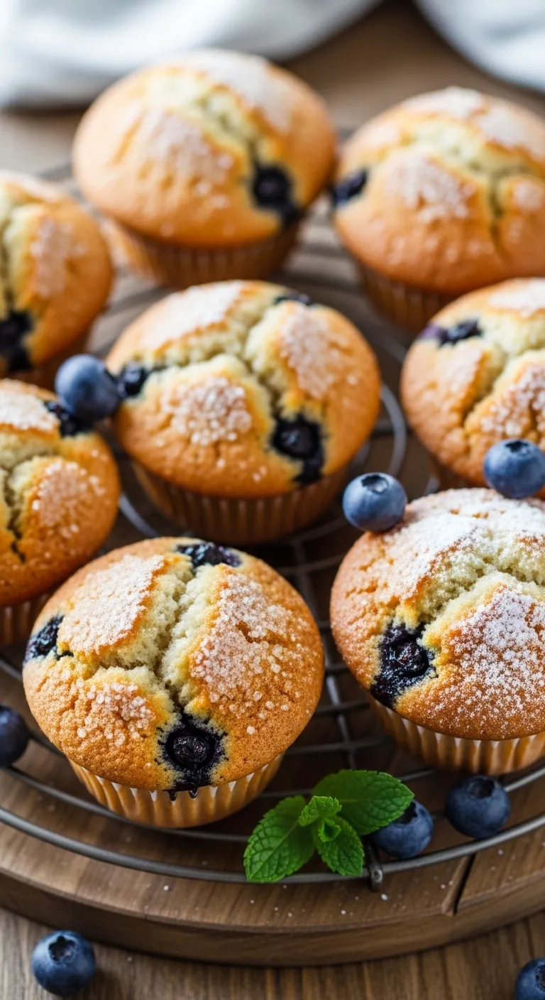 Soft muffins filled with juicy blueberries and a lightly crisp sugar top.