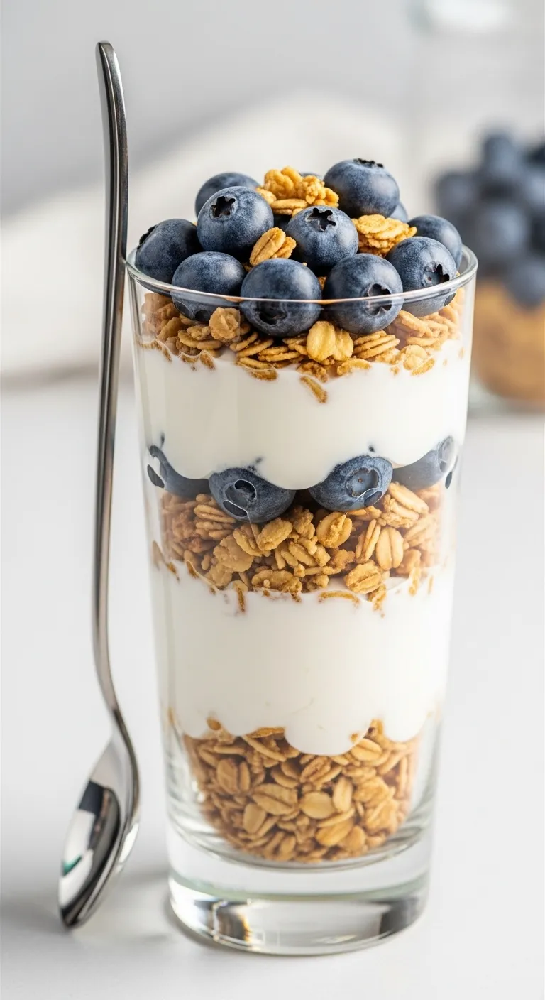 Layer blueberries with yogurt and granola for a refreshing treat.