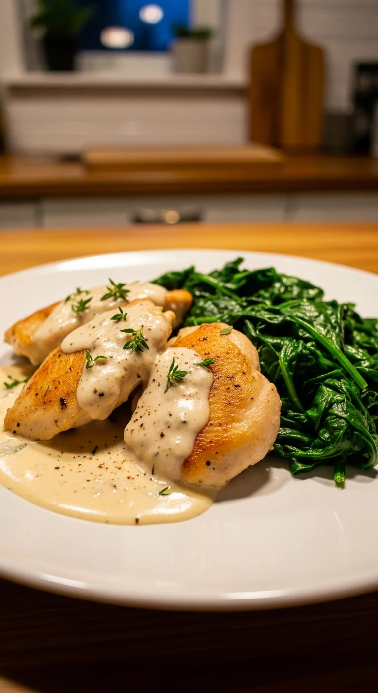 Sear chicken until golden, then simmer briefly in broth with a small splash of cream. Stir in spinach at the end so it stays tender. The sauce feels comforting without being heavy. Works well over pasta or mashed potatoes.