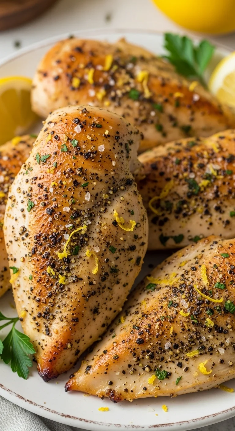 Chicken breasts cook quickly in a hot skillet with olive oil, garlic, and lemon slices. The lemon keeps the meat tender while adding brightness. Finish with a splash of broth to loosen the pan. Serve with rice or vegetables. This dish comes together fast and uses pantry staples.