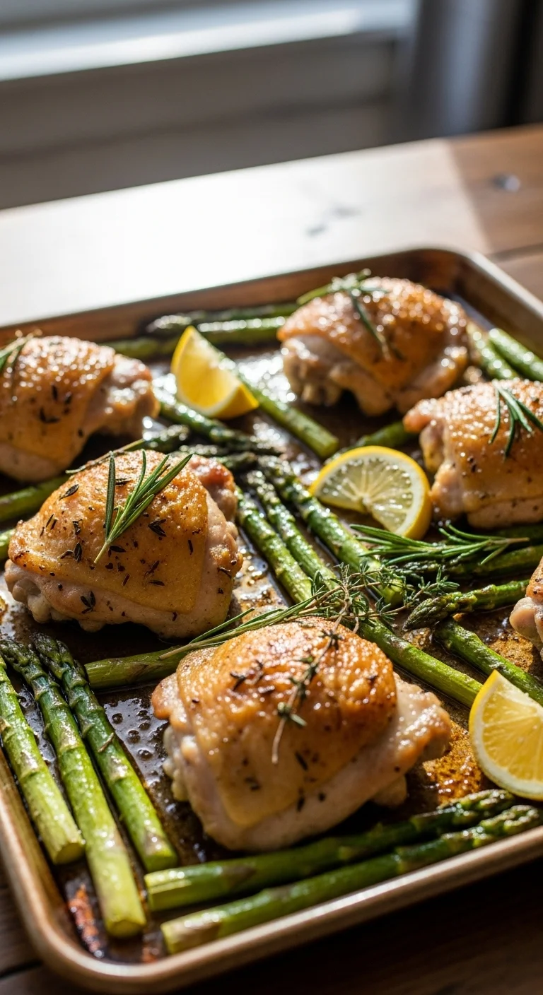 Everything cooks together on one pan. Toss chicken and asparagus with oil, salt, and pepper. Roast until the chicken is cooked through. Cleanup stays simple, and timing is predictable.