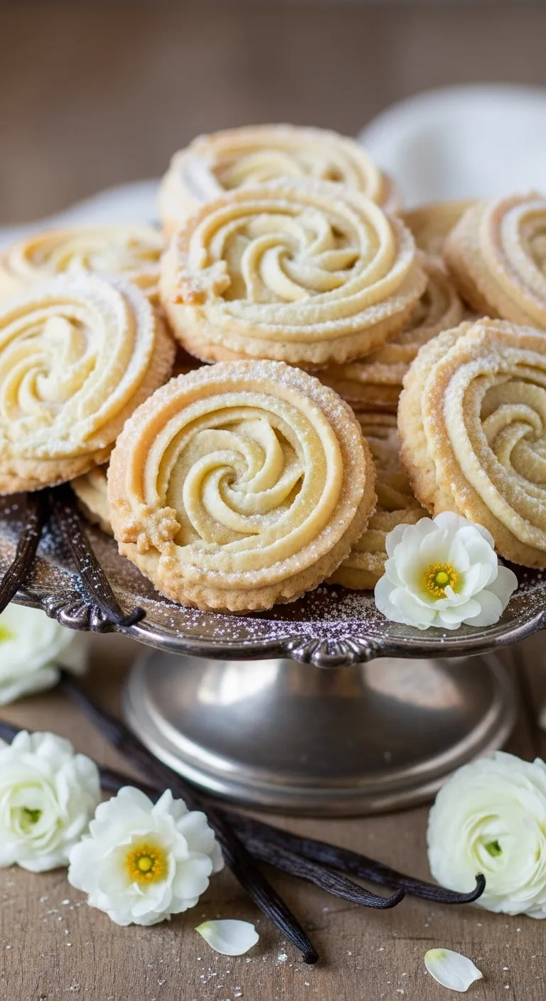Fit a piping bag with a large star tip (like Wilton 1M) and fill with dough. Pipe rosettes onto parchment-lined sheets, spacing about two inches apart. Chill piped cookies for 15 minutes—this helps them hold shape.
