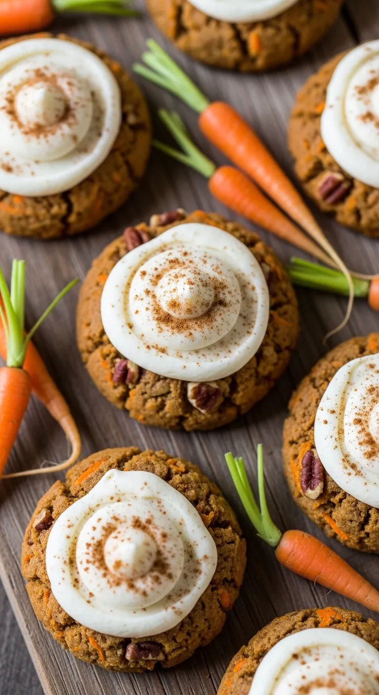 All the flavor of carrot cake in cookie form. Cream half cup of softened butter with three-quarters cup of brown sugar until light. Add one egg and one teaspoon of vanilla.
