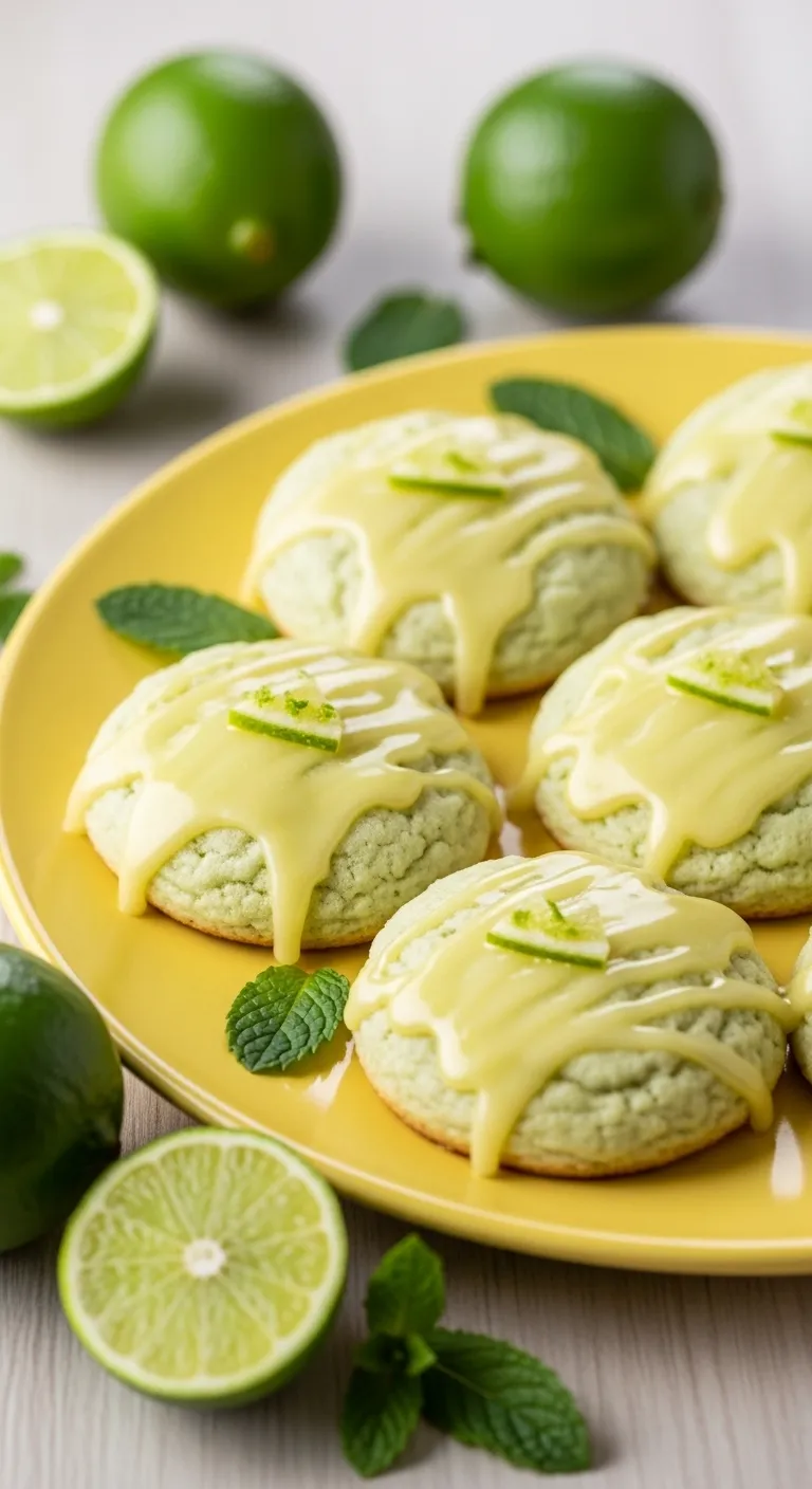 For the glaze, mix one cup of powdered sugar with enough key lime juice to make a thick drizzle. Top with candied lime pieces if desired.