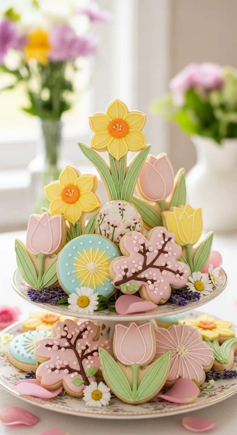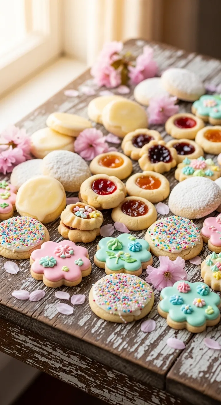 These stunning cookies double as edible art. Use the soft sugar cookie dough from recipe #3. Roll to quarter-inch thickness and cut into flower shapes using spring-themed cookie cutters. Bake at 350°F for 10 to 12 minutes until edges are just barely golden. Cool completely.