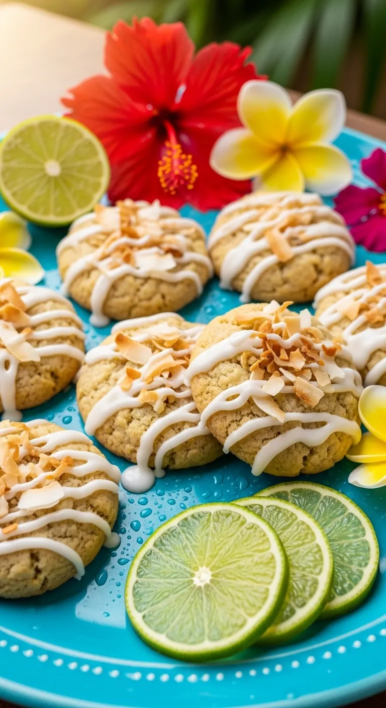 For the glaze, mix one cup of powdered sugar with enough lime juice to make a thick drizzle. Top with toasted coconut.