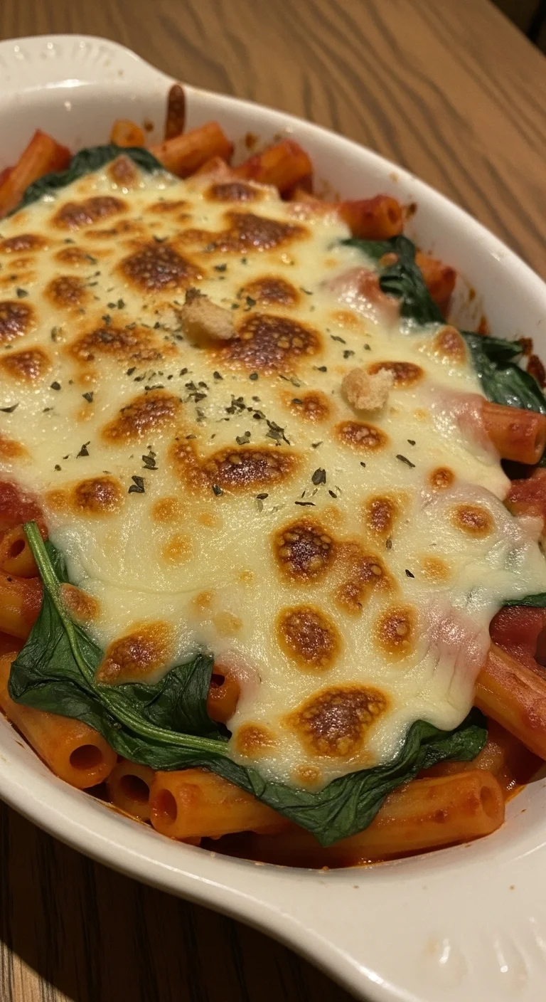 Use less cheese than traditional versions. Add spinach for balance. Comforting and filling.