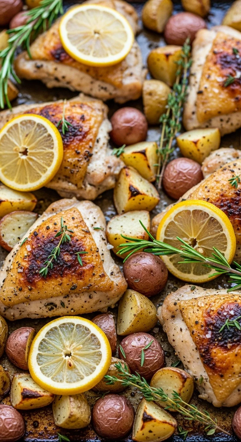 Roast potatoes and chicken together with garlic and lemon. Simple seasoning, strong comfort factor.