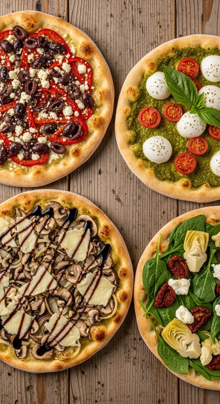 Use store-bought flatbreads. Top with vegetables, cheese, and herbs. Bake until crisp. Easy and flexible.